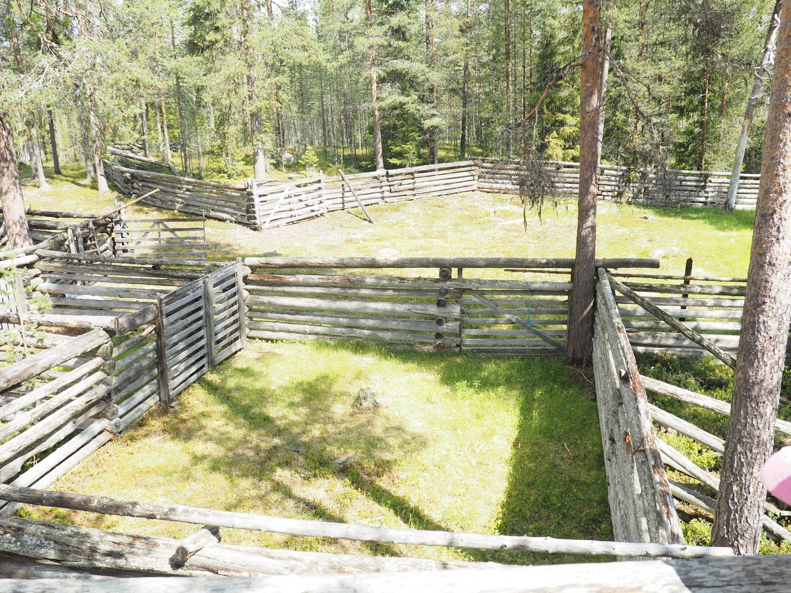 Tulimme pian poroaitaukselle. Siinä oli pieni näkötorni, mistä pystyi paremmin näkemään poroaitauksen muodon. Lapset innostuivat heti kiipeämään näkötorniin. Tämän jälkeen jatkoimme matkaa pitkospuita pitkin. Hiidenlammella oli kaunista, eikä montaa ihmistä tullut matkan varrella vastaan. Pian jyrähti ukkonen. Itseäni alkoi hieman jännittää, että mahtaako ukkonen iskeä pahemminkin päälle, mutta onneksi se jäi yhteen jyrähdykseen. Tulimme pian vanhalle niittyladolle, missä oli pöytä ja penkit ulkosalla. Jäimme siihen syömään voileivät. Pian alkoi vesisade, mutta onneksi pääsimme latoon suojaan pahinta sadekuuroa.